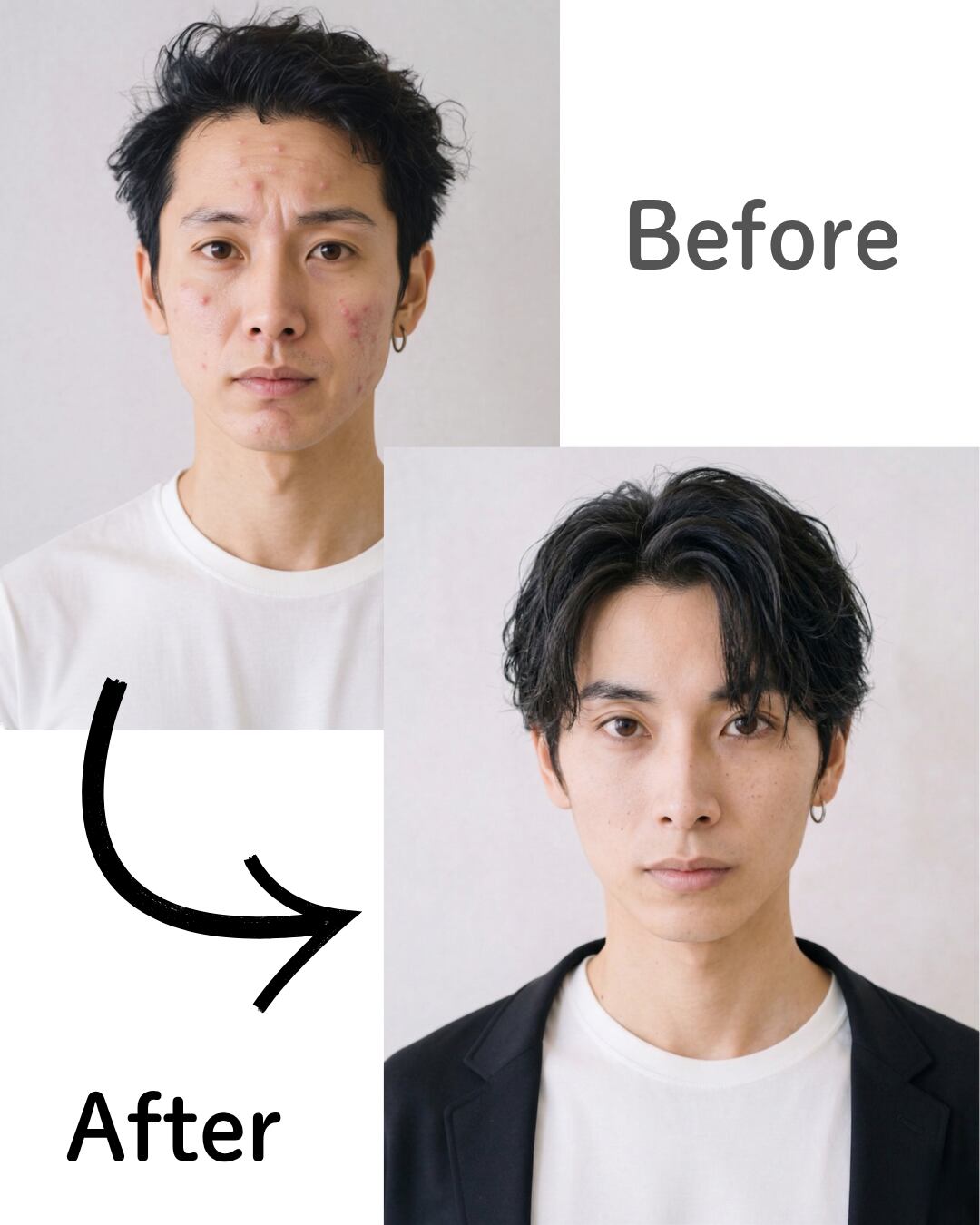 ・自然な美肌加工:ニキビや肌荒れ、クマなどを自然にレタッチ。清潔感のある、信頼される表情に仕上げます。